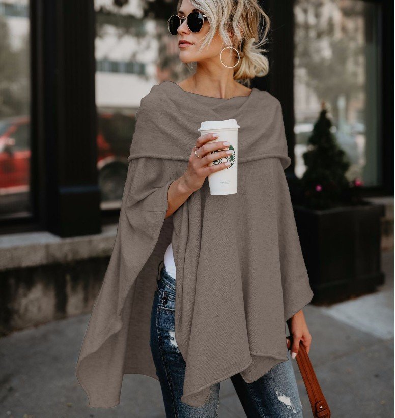 New Solid 7 Colors Turtleneck Button Loose Knit Cape Sweater
