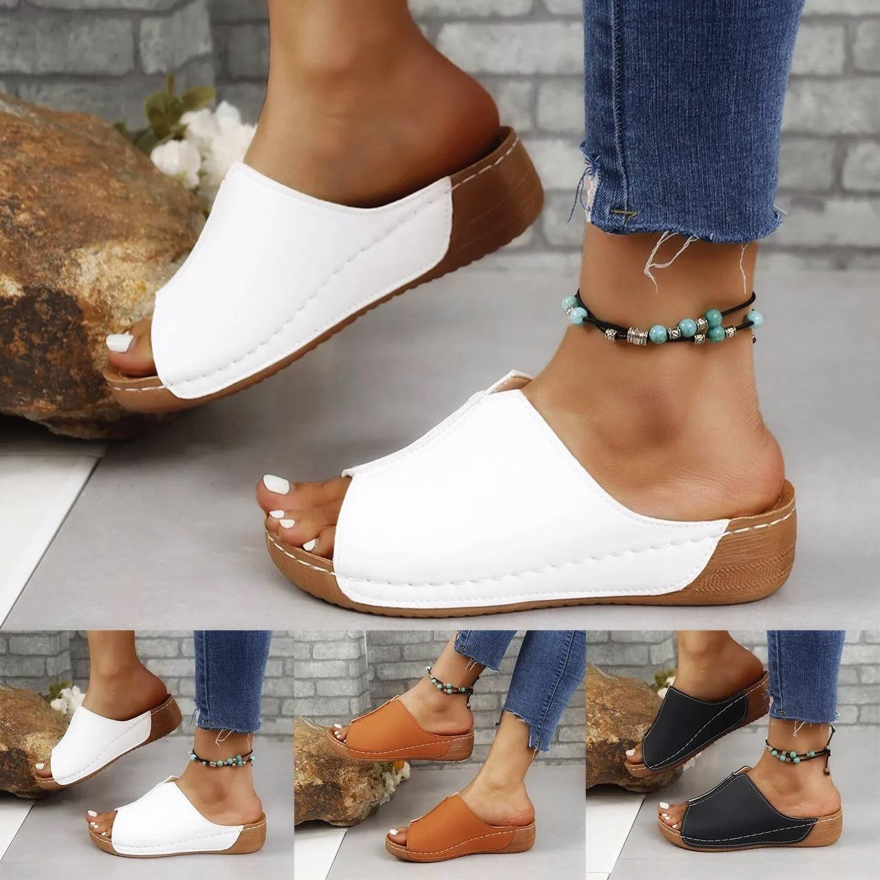 😍Last Day 50% OFF😍 - Women's Solid Colour Thick Bottom Slope Heel Orthopaedic Sandals