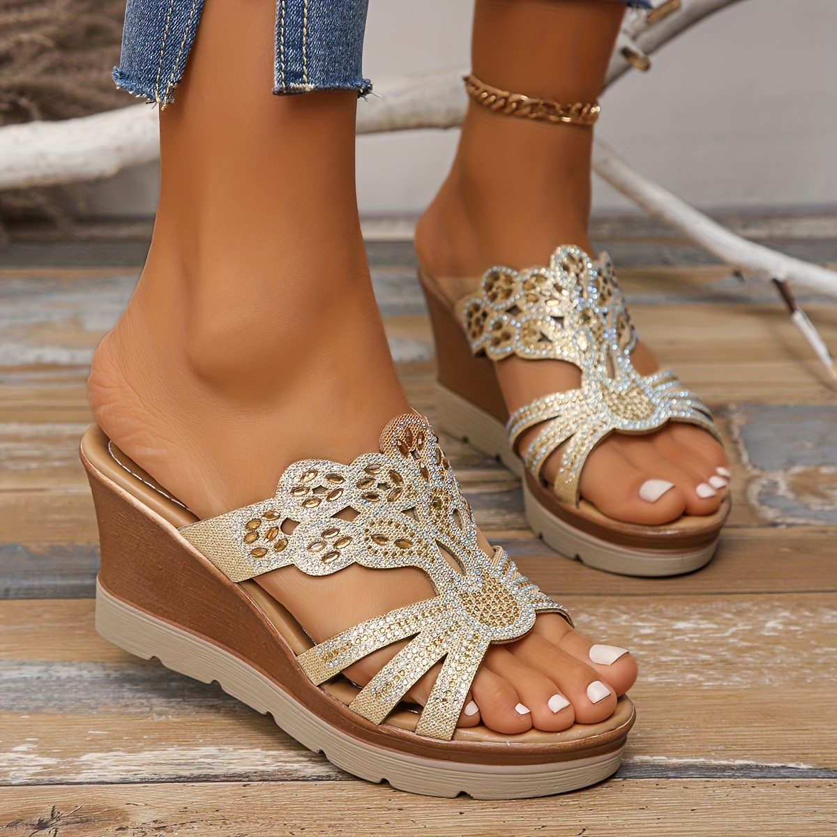 😍Last Day 50% OFF😍 - Women's Rhinestone Decor Wedge Sandals
