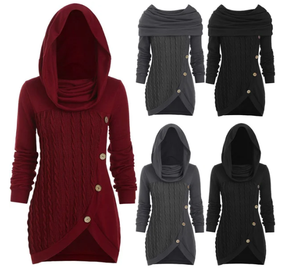 Women's Irregular Pile Collar Hooded Sweater