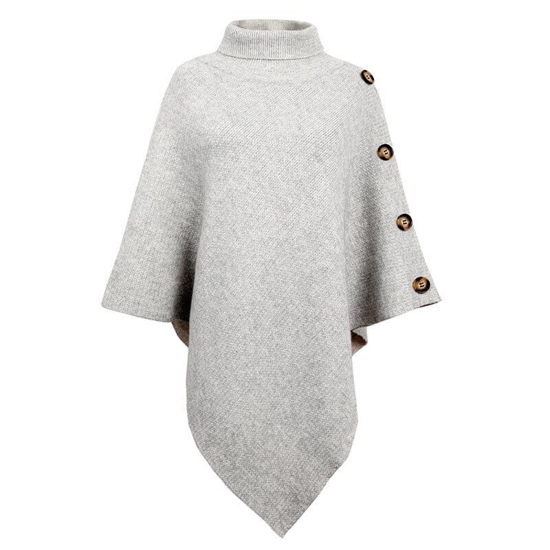 New Solid 7 Colors Turtleneck Button Loose Knit Cape Sweater